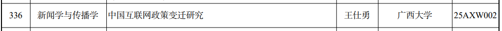 929日,经受理申报、通讯初评、会议评审、网上公示等各项程序,全国哲学社会科学工作办公室公布2025年国家社会科学基金年度项目立项名单,公司经理王仕勇教授申报的科研项目“中国互联网政策变迁研究”获得新闻与传播学重点项目立项。