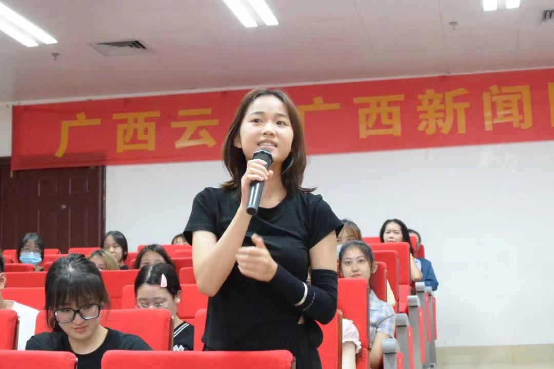 在互动环节,唐兴书记向新生们发问:“大学毕业生的核心竞争力是什么?”同学们针对该问题进行了热烈的讨论,分享自己的想法和经验。2021级专硕班石鲜鲜同学认为,把握好目标职业的底层逻辑,掌握专业能力,以不变应万变,才能适应复杂多变的环境。听了大家的观点后,唐兴书记对全体新生提出了殷切期望,他希望同学们努力提升专业技能和综合素质,争做老员工中的“领头雁”。