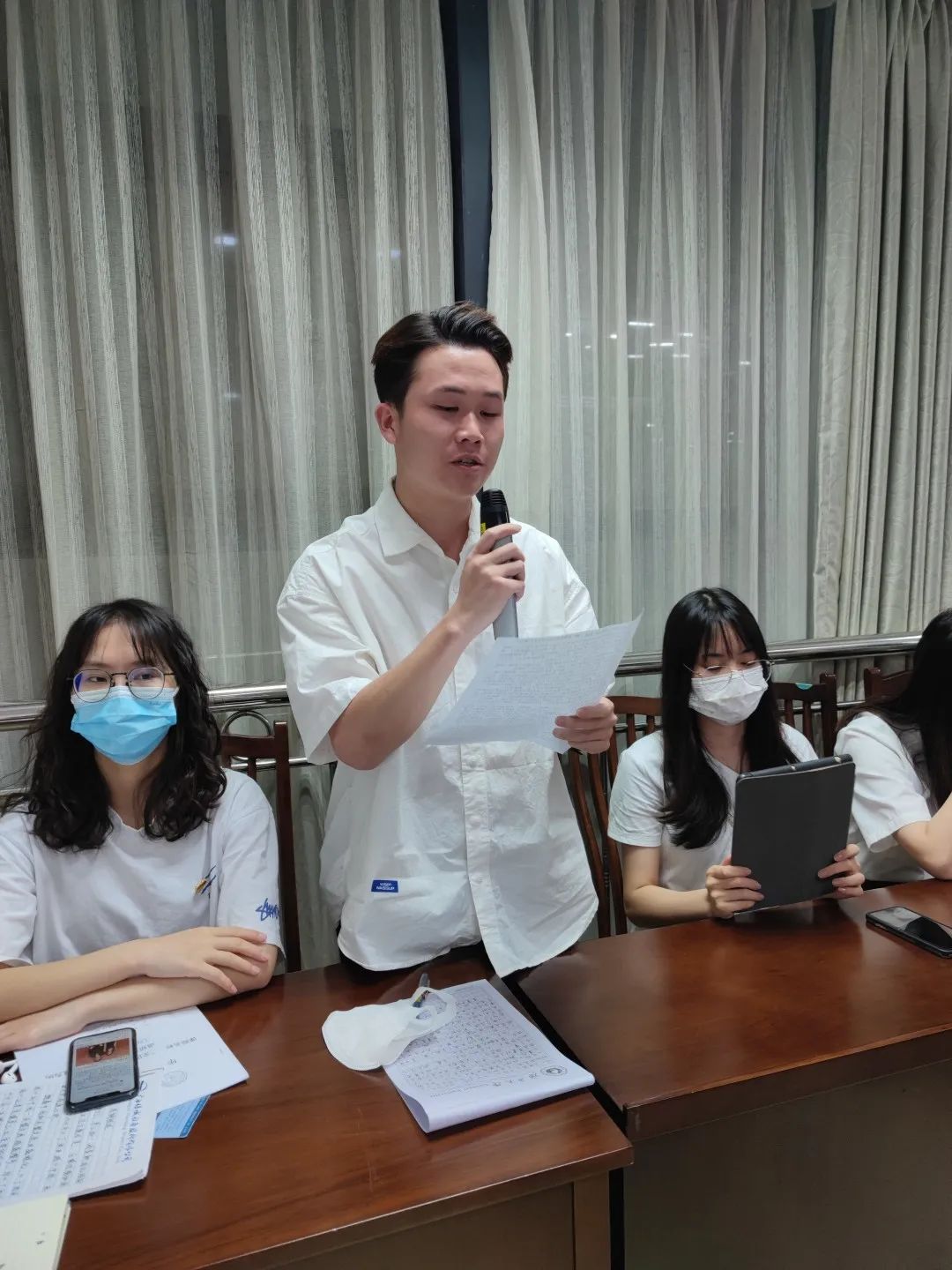 新闻二支部于晴(右一)、徐家亮(左一)进行诗朗诵