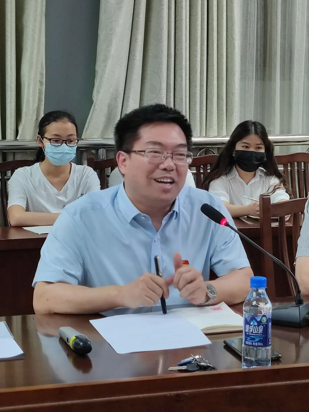 李继兵教授也就自己的学习体会和同学们进行交流分享。他对此次党日活动表示充分的肯定,并强调:“当代青年应做到不负韶华、不负人民、不负时代。”继而以“以梦为马,不负韶华”一句话切入,对与会员工进行了勉励。他指出,当代青年要做到“不负韶华”,一是要有想法,想就是思考,思考是行动的基础。如果没有想法,就不会干事创业;二是要将想法付诸实践,作为新闻学子,我们可学习吸收学界业界大家的经历、思想,将其内化于心,外化于行,才能让步履归于实地,一步一个脚印地向着梦想的方向迈进;三是珍惜时光,韶华就是美好的青春,青春是人生中最宝贵的时期,当代青年要牢记习近平总书记的期望和嘱托,为国家、为人民、为社会做出自己应有的贡献,青春逝去后才不会因虚度年华而懊恨,也不因碌碌无为而遗憾。
