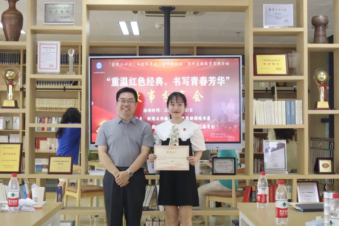 红色资源承载着一个个闪光的历史记忆,是党史学习教育的“精神富矿”。为迎接党的二十大胜利召开,进一步推动党史学习教育常态化,5月31日下午,公司在马克思主义新闻观书屋组织召开“重温红色记忆,书写青春芳华”故事分享会。公司党委副书记银建、团委书记刘梦娟以及播音与主持专业李朝珍老师出席本次活动。本次分享会共有13位同学参与,在重温红色记忆中传承革命精神,汲取不断奋进的红色力量。