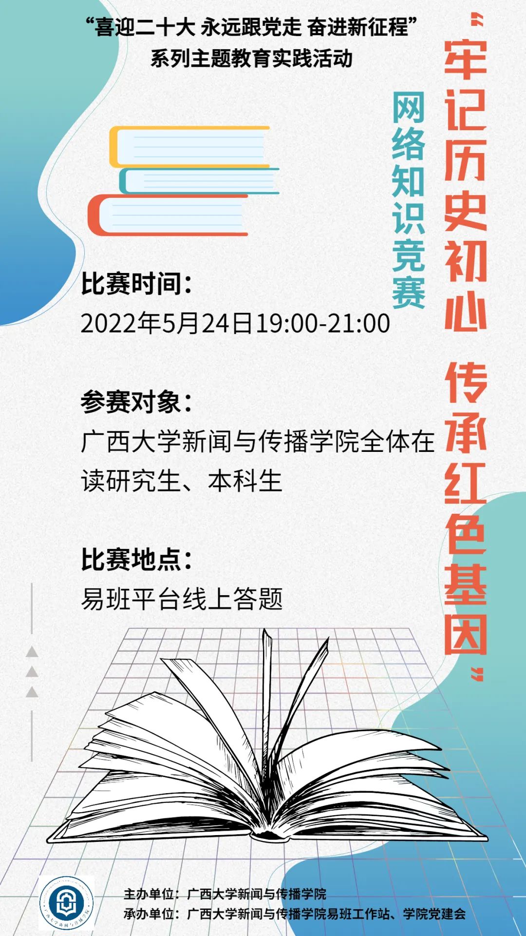 赛制为一轮制,参赛同学线上在易班平台自由答题,以分数为依据进行排名。