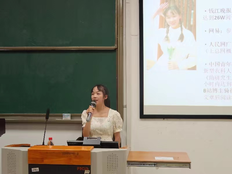 陆雪雯同学建议大家积极参加社会实践,因为作为新闻专业的员工,实践非常重要。她结合自身实践经历向大家介绍了社会实践的具体情形,分享了她的所见所感。她建议大家“走出课堂,走入祖国大地,把个人发展同国家的前途命运紧密联系在一起”,这个过程中“能够认识新朋友,拓展新视野,增强综合能力”。最后她希望大家能够好好珍惜时光,努力提升专业技能。