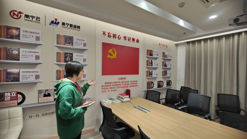 南宁新闻网新闻互动中心副主任汤洁葵介绍党建工作经验