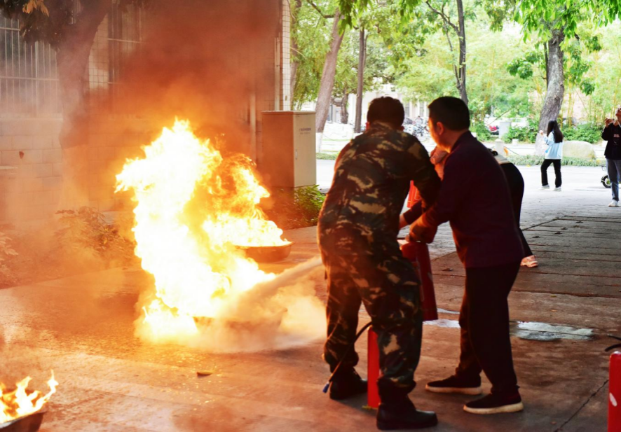 黄光电指导公司教师使用灭火器