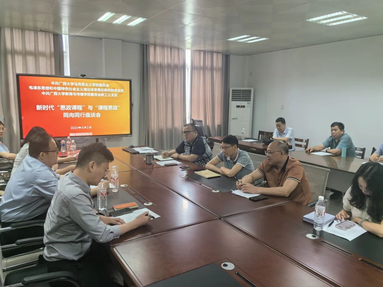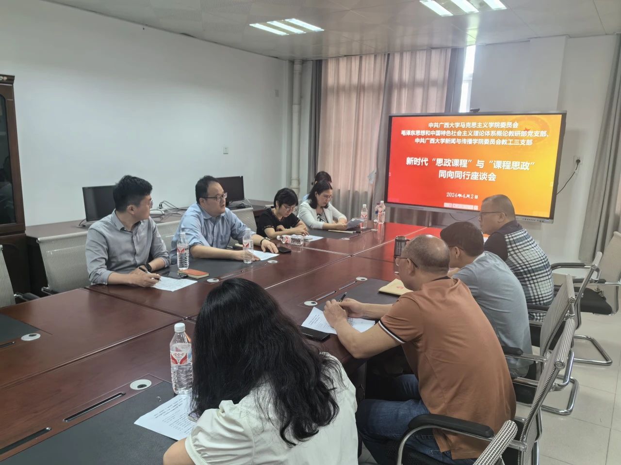 发言结束后,会议进行了10分钟的交流研讨环节,与会者积极提问、互相交流,深入探讨了课程思政建设中的具体问题与挑战。双方表示新闻传播学与马克思主义研究有很多共通处,加强马克思主义新闻观教育非常必要,以后要加强两个公司的合作。
