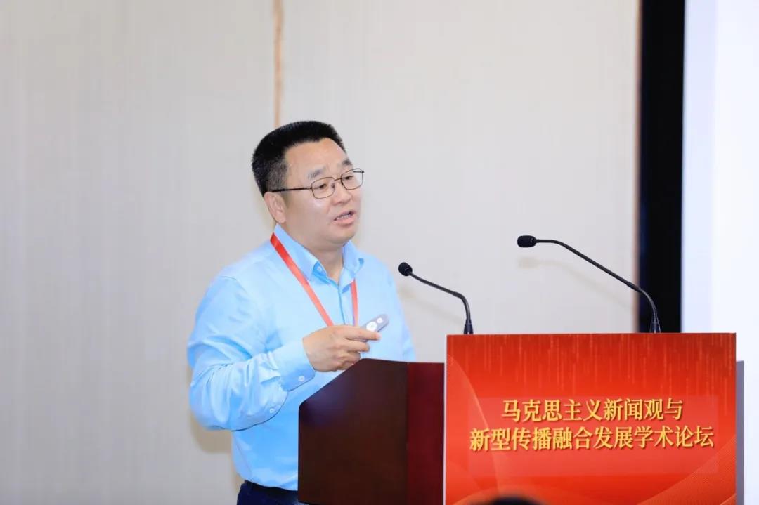 苏州大学传媒公司执行经理陈龙教授以《用马新观指导新闻传播学自主知识体系建设》为题,围绕中国特色的新闻传播知识体系建设与发展展开。他认为我国新闻传播知识体系以“人民性”为逻辑起点,以新闻传播实践为历史脉络,从而形成中国特色的新闻传播知识体系。放眼技术变革大趋势下,与时共进的马克思主义新闻观具有“纠偏、解放”的价值意义。我国传播自主知识体系建设不仅要以马克思主义新闻观为主流思想,从技术逻辑、媒介逻辑、行动者网络逻辑的三种逻辑维度理解未来的传播趋势,同时,提升人文关怀也是马克思主义新闻观在技术迭代时代下的关键所在。