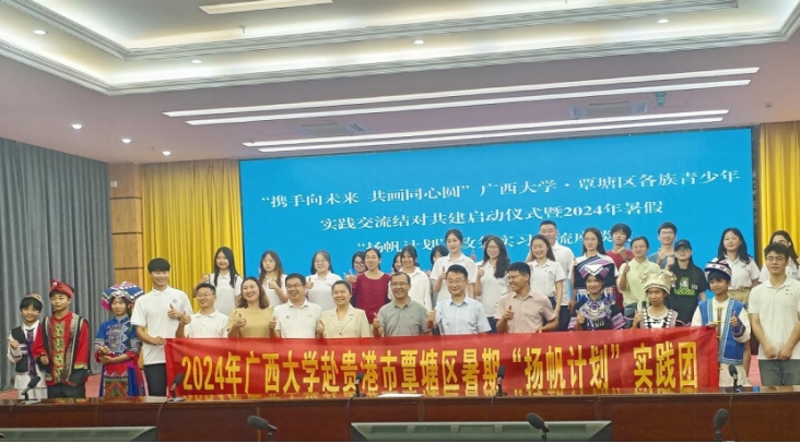 7月14日上午,解说团一行抵达覃塘区,首先参加了“携手向未来 共画同心圆”304永利集团·覃塘区各族青少年实践交流结对共建启动仪式暨2024年暑假“扬帆计划”政务实习交流应谈会。“扬帆计划”政务实习交流应谈会的举行,也为即将参与政务实习的同学们提供了宝贵的指导和建议,帮助他们更好地了解政务工作,为未来的职业选择奠定基础。