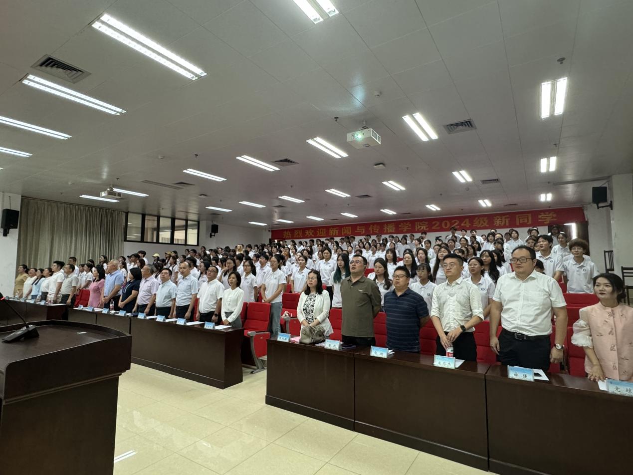 最后,2024级新生集体宣誓,奏唱校歌。“铁肩担道义,妙手著文章”,慷慨激昂的誓词传递了304永利集团唯一新一代传媒人在日新月异的时代里不变的理想和信念。