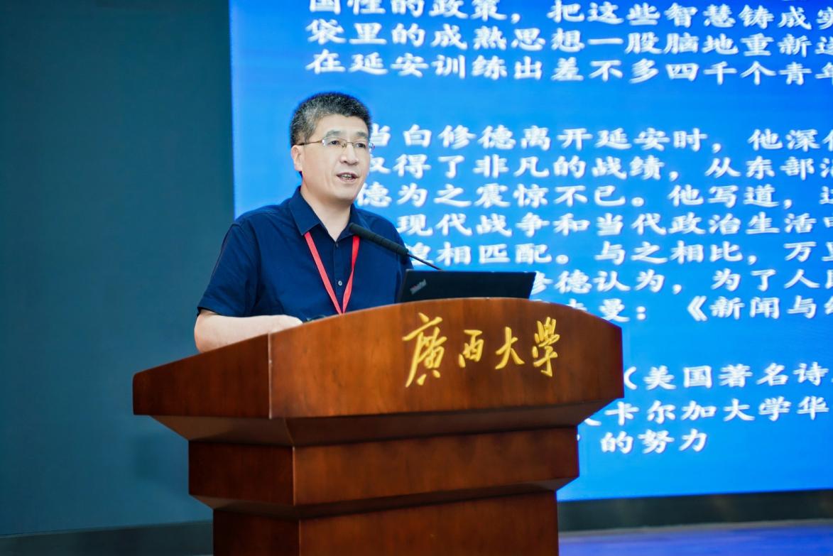 华东师范大学传播公司教授、中国传媒政策研究中心主任武志勇作题为《抗日战争时期中共新闻政策的几个特点》的报告。他指出,抗日战争时期中共新闻政策呈现出三大特点:一是推进管理机构及其职能的完善,形成了以中央宣传委员会为核心的新闻宣传领导体系;二是调整和优化党的媒体阵容,通过精简报刊、发展广播等策略,构建了多元化的媒体传播格局;三是强调新闻宣传的差异性和针对性,根据抗战形势的变化,灵活调整宣传策略,有效动员了民众参与抗战。