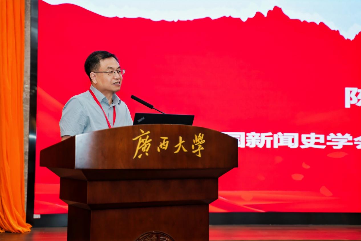 陈信凌在致辞中强调,今年是中国人民抗日战争暨世界反法西斯战争胜利80周年,本次会议开展在8月后国内理论界、学术界一系列纪念活动之前,肯定本次会议具有“先行一步”的意义。他以《新华日报》《群众周刊》在周恩来领导下突破新闻封锁、宣传中共统一战线政策,以及《晋察冀日报》报道“北岳大战小景”和狼牙山五壮士事迹为例,指出这些报刊共同构建起全民族抗战的舆论阵地。他期待通过本次会议的深入研讨,能够进一步挖掘抗日战争时期红色报刊的历史价值,推动红色新闻研究的深入发展。