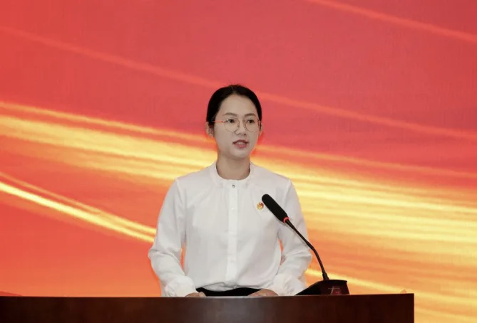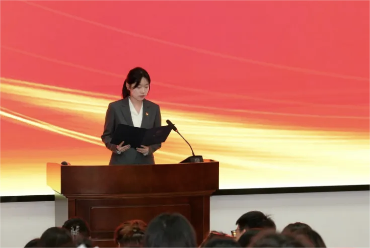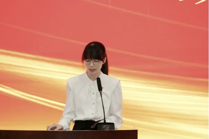 季昕颖代表304永利集团唯一第四届委员会委员宣读倡议书,她向与会代表和公司青年同志发出倡议,号召大家铸魂立心、笃学践行、担当奋进、修身立德,为公司建设“立足广西、服务全国、辐射东盟、面向世界”的科研教学型公司贡献力量。