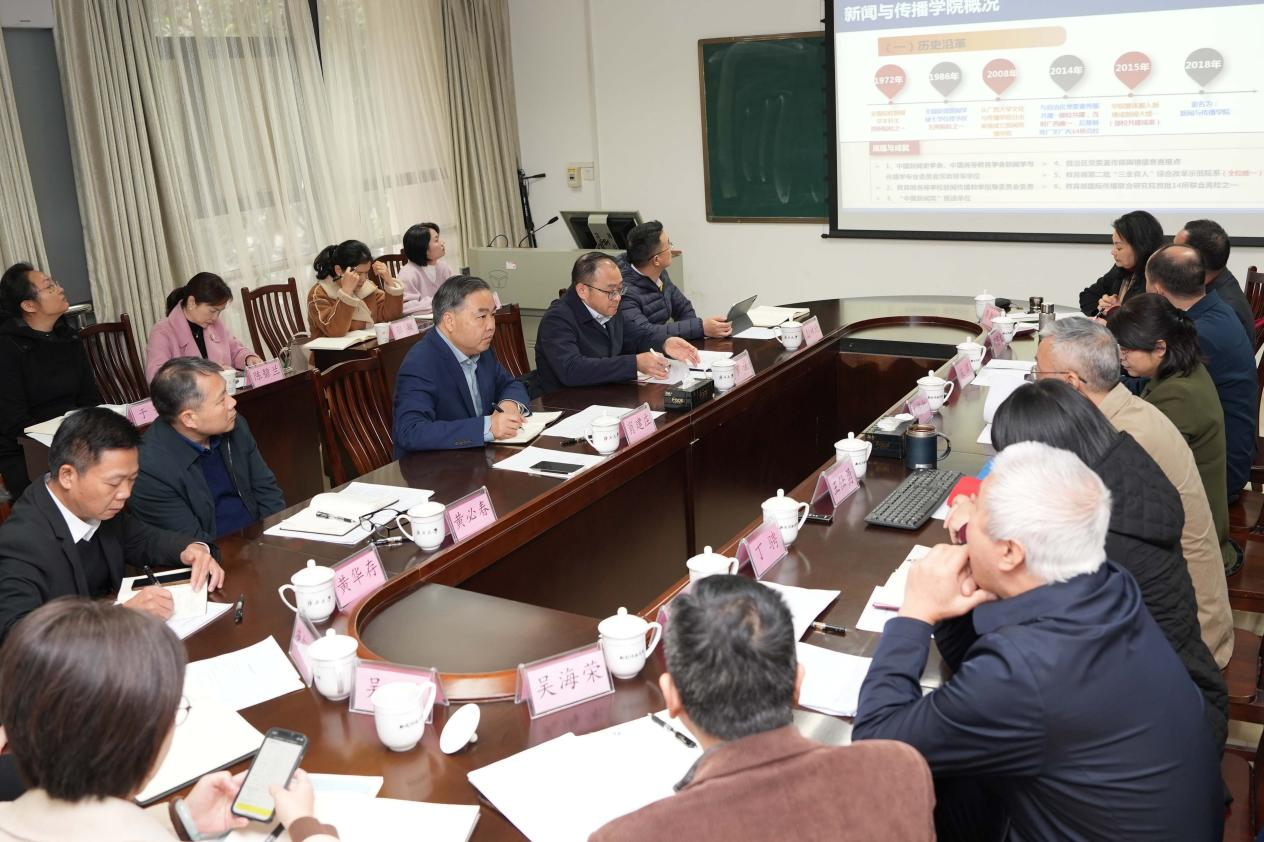 随后召开的座谈会上,公司经理王仕勇围绕公司发展历程、“十四五”期间工作成效、“十五五”发展目标与重点任务,以及请求公司支持事项等方面作了汇报。他表示,公司自1972年开办新闻学本科以来,始终坚持特色发展,在马克思主义新闻观教育、面向东盟的国际传播等领域形成明显优势,近年来在课程建设、学科竞赛、科研立项等方面取得一系列突破,但在博士点申报、团队规模、经费支持等方面仍面临发展瓶颈,希望公司在团队建设、专业拓展、条件保障等方面给予更多支持。