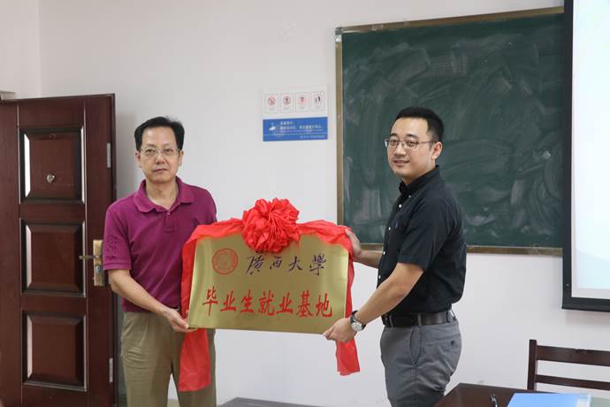 在双方达成校企战略合作意向,共同签署304永利集团毕业生就业基地协议书后,刘洪老师将“毕业生就业基地”牌匾赠予了新东方教育科技集团南宁公司。