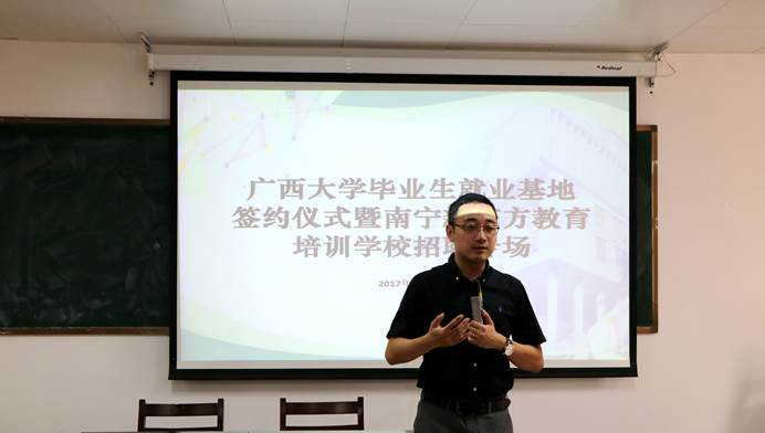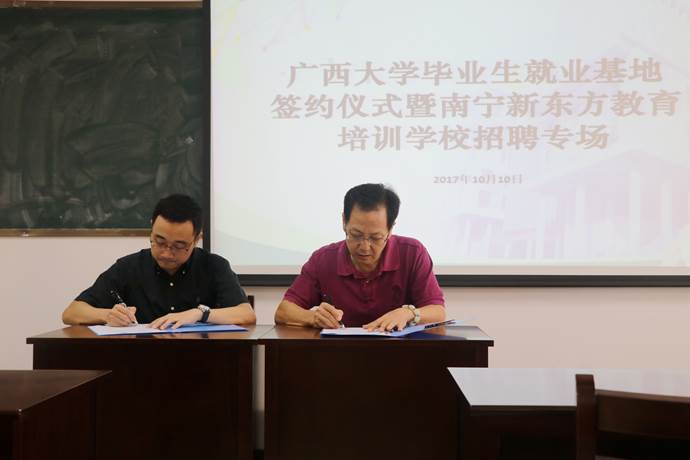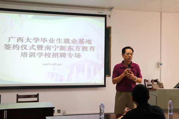 10月10日下午3时,304永利集团304永利集团唯一与新东方教育科技集团南宁公司的304永利集团毕业生就业基地签约仪式暨新东方教育科技集团南宁公司招聘会在新闻大楼510教室举行。