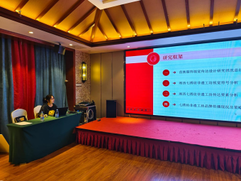 陈鯕妃在“时尚品牌与传播战略”研究生分论坛宣讲了与黄薇合作完成的论文《苗族服饰品牌视觉传达设计与传播探究——以“湘西七绣坊非遗工坊”品牌为例》,研究运用视觉传达设计、品牌传播等知识,深入探寻湘西著名苗绣品牌“湘西七绣坊非遗工坊”目前在产品与品牌视觉传达设计中苗绣文化的运用情况,并探究其存在的传播运营问题。