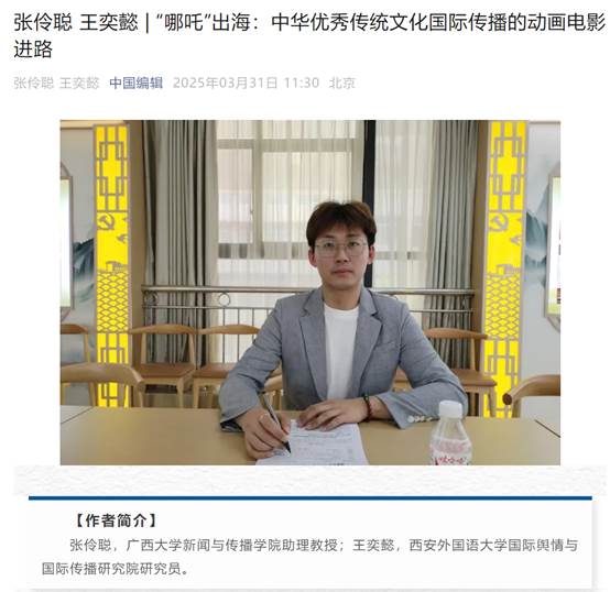公司张伶聪博士在CSSCI来源期刊《中国编辑》2025年第4期上以第一作者身份发表论文《“哪吒”出海:中华优秀传统文化国际传播的动画电影进路》。3月31日,《中国编辑》微信号推送介绍了该论文。