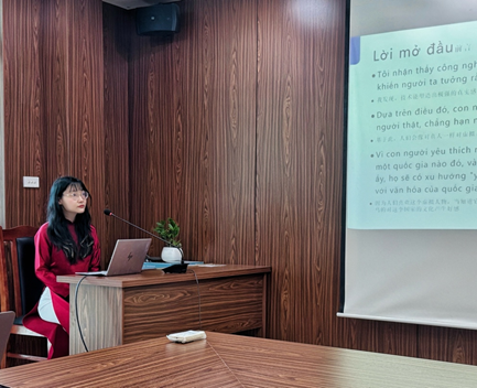 研讨会上,董佳宜同学以虚拟偶像为研究对象,探讨其在国际传播中的文化潜力。她指出,虚拟数字人因具备情感互动能力,常被用户视为朋友甚至亲密对象,从而激发其对所代表国家文化的认同与兴趣。她强调,技术的中立性为构建更平等、友好、具文化亲和力的国际传播方式提供了新的可能性。