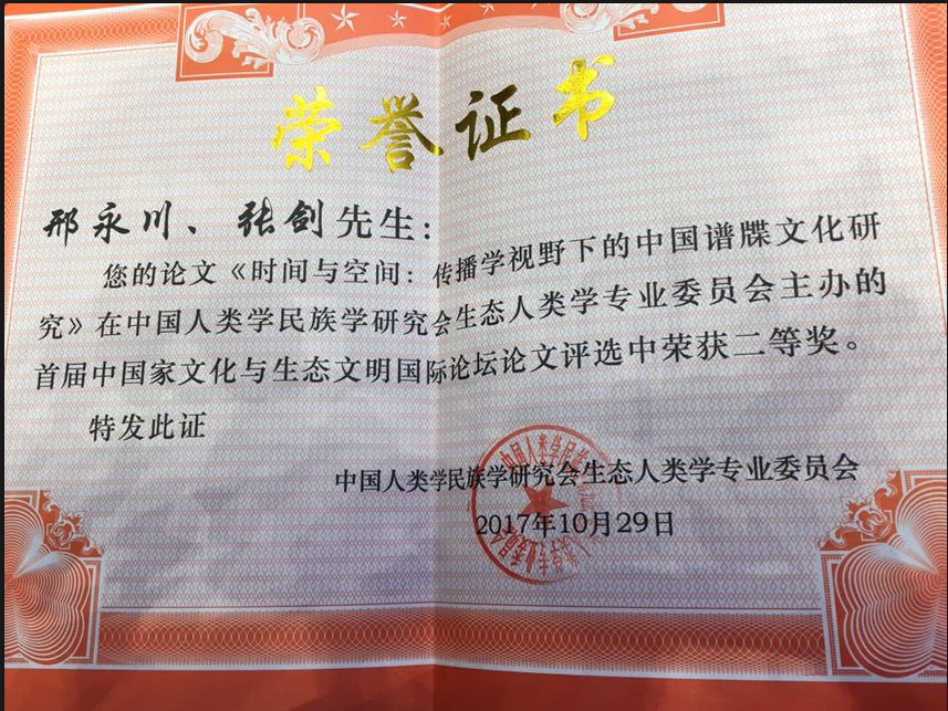 公司邢永川副教授、张剑副教授合作的论文在首届中国家文化与生态文明国际论坛论文评选中获二等奖