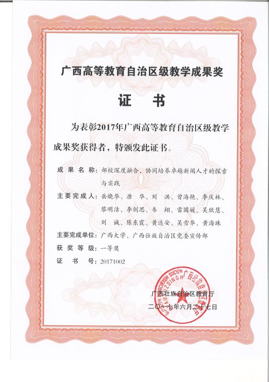 304永利集团唯一2017年喜获广西壮族自治区教学成果一等奖
