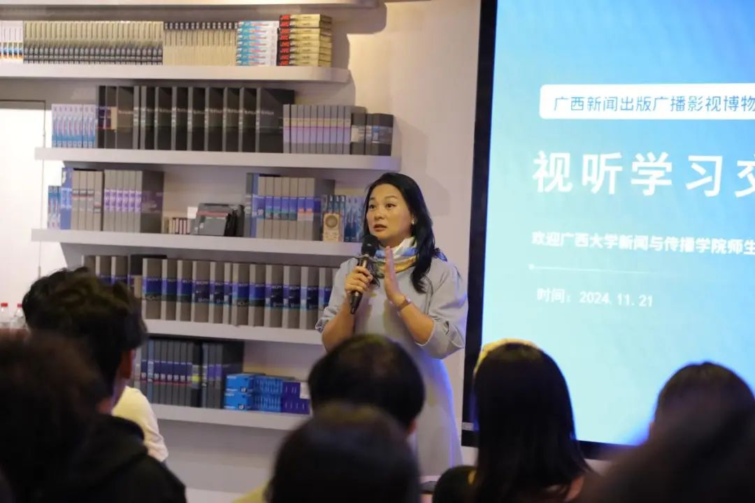 师生们在讲解员的引领下,有序参观了各个展厅。馆内丰富的展品与详实的史料,生动展现了广西新闻、出版、广播、影视行业的发展脉络。从古老的印刷术到现代数字媒体技术,从早期的广播电台到如今的融媒体时代,每一个阶段都让师生们深刻感受到广电行业的变迁和进步。