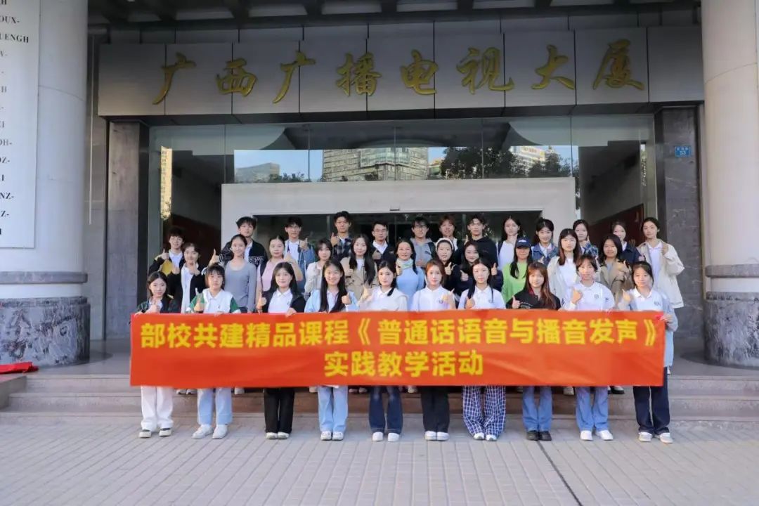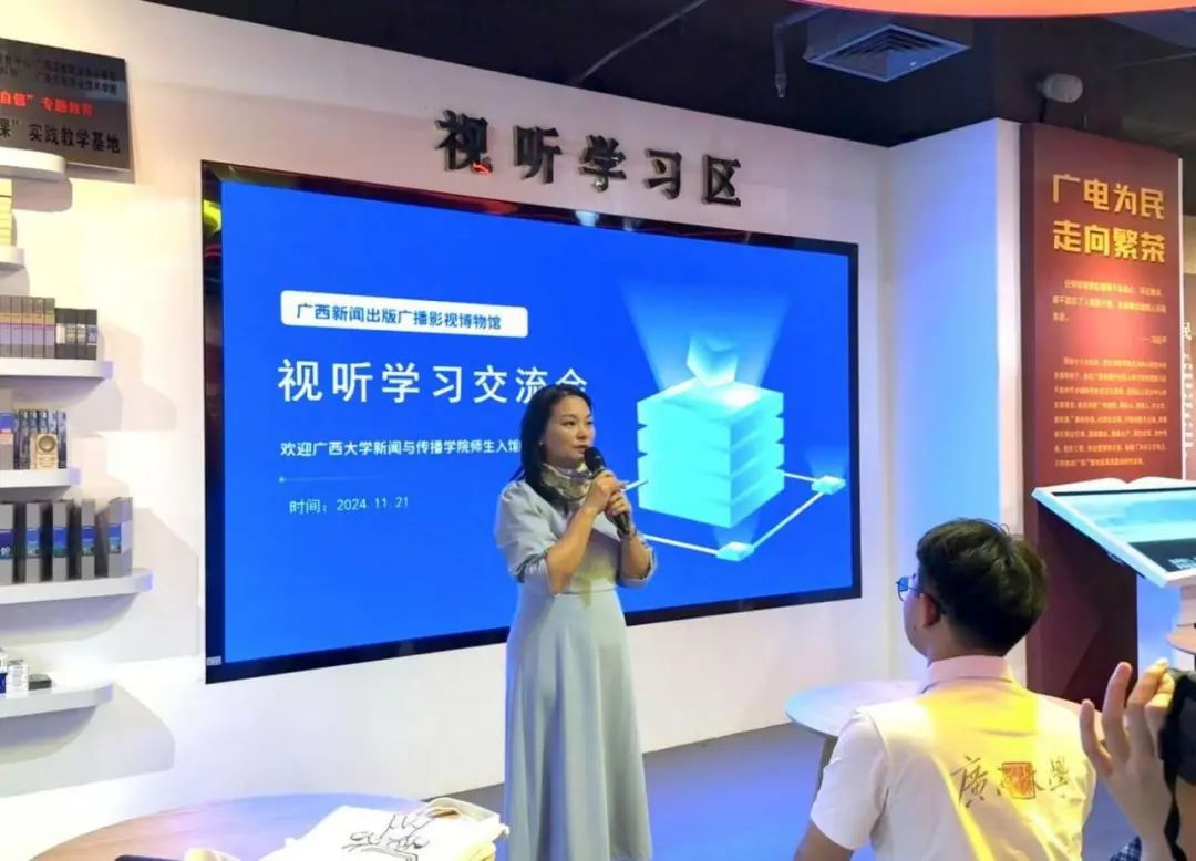 2024年11月21日,在304永利集团唯一部校共建精品课程《普通话语音与播音发声》课程负责人李朝珍教授的带领下,播音与主持艺术专业2023级、2024级本科生,前往广西新闻出版广播影视博物馆进行校外创新实践教学活动。