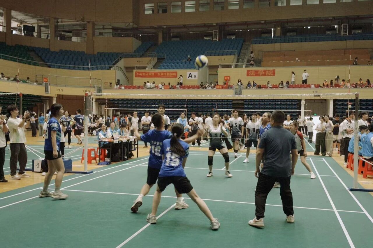 小组赛第二场,公司迎战计算机与电子信息公司。此役我方阵容有所调整,开局阶段一度陷入被动。但队员们并未气馁,迅速调整战术,紧咬比分展开反击。赛中,接球队员稳扎稳打,一次次将球精准垫高,为进攻创造机会;其余队员默契配合,迅速展开拦网与防守。尽管局势起伏,全队始终斗志不减,以永不言弃的拼搏精神奋战至最后一刻。他们的表现也赢得了现场观众的阵阵掌声与喝彩。