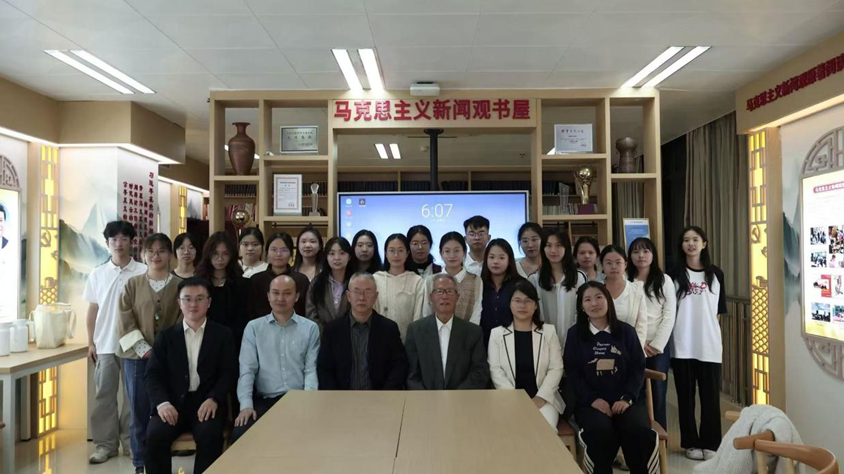 此次座谈会是郑保卫教授当日开展的“学好党的二十届四中全会精神、做好马克思主义新闻观教育研究”学术讲座的延伸。怀着“挚爱新闻学、笃信马克思主义新闻观、钟情新闻教育”的深厚情怀,郑教授重返公司,与师生共同探讨马克思主义新闻观的学习与实践。