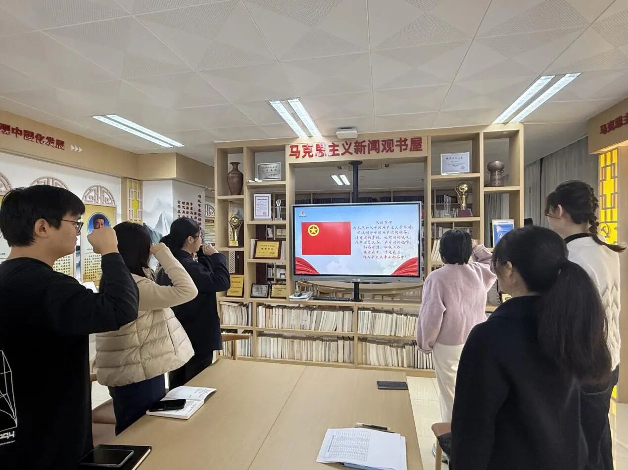 在“明志·筑梦新年”环节,全体团员青年在团委书记何湘桂的带领下,面向团旗,庄严重温入团誓词。铿锵有力的誓言回荡在会场,提醒每一位学子不忘初心、牢记使命,坚定将个人理想融入时代洪流,为传播中国声音、讲好中国故事贡献青春力量的决心。