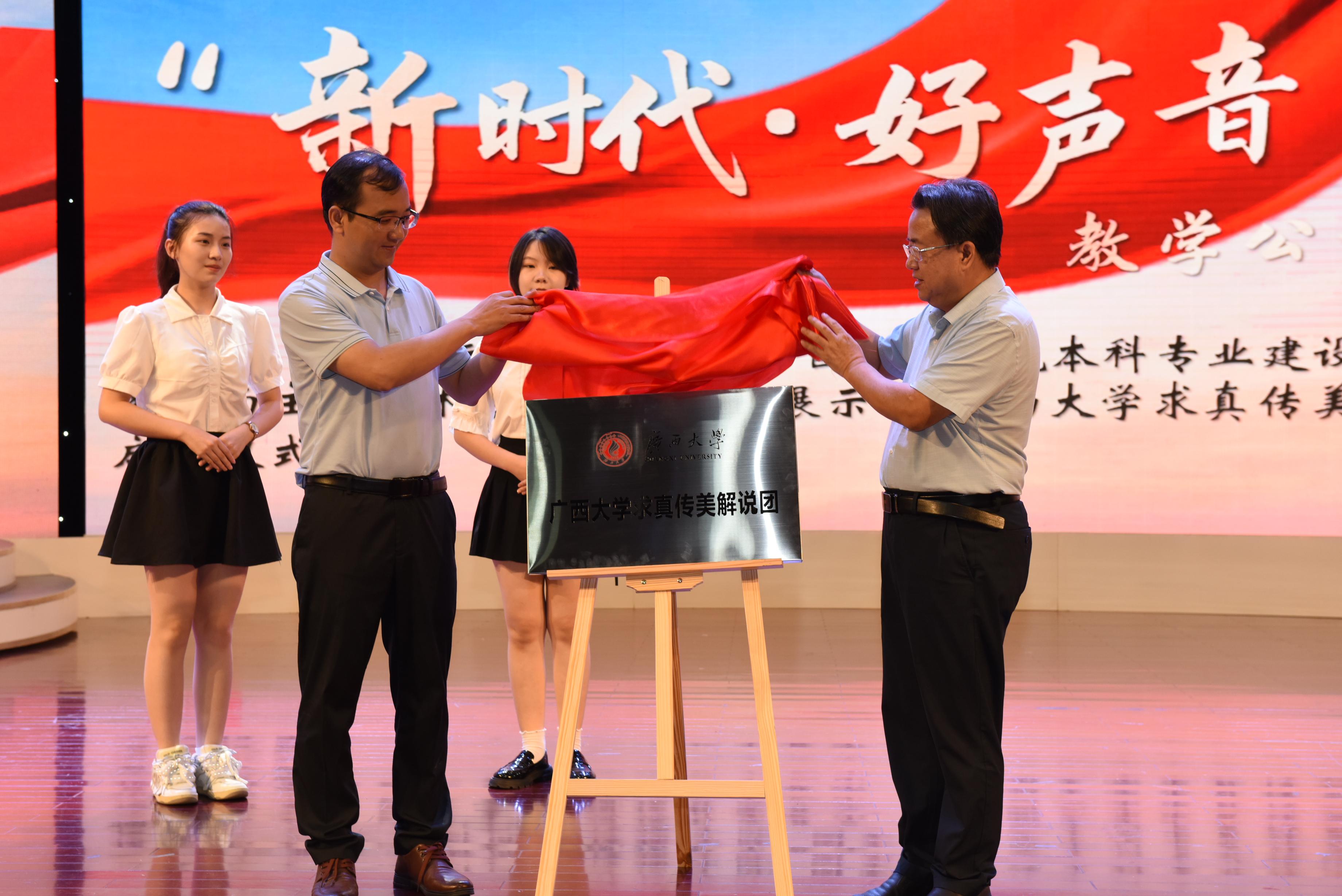 304永利集团求真传美解说团是304永利集团校级社团,成立后将致力于介绍校园特色场馆、宣传广西红色故事、传播民族优秀文化。启动仪式上,304永利集团团委书记谢能重、304永利集团新闻与传播公司党委书记唐兴为解说团揭牌,304永利集团唯一为3位广播电视业界的一线专家以及7位文博界的“五好”讲解员颁发聘书,邀请他们担任解说团的校外顾问。