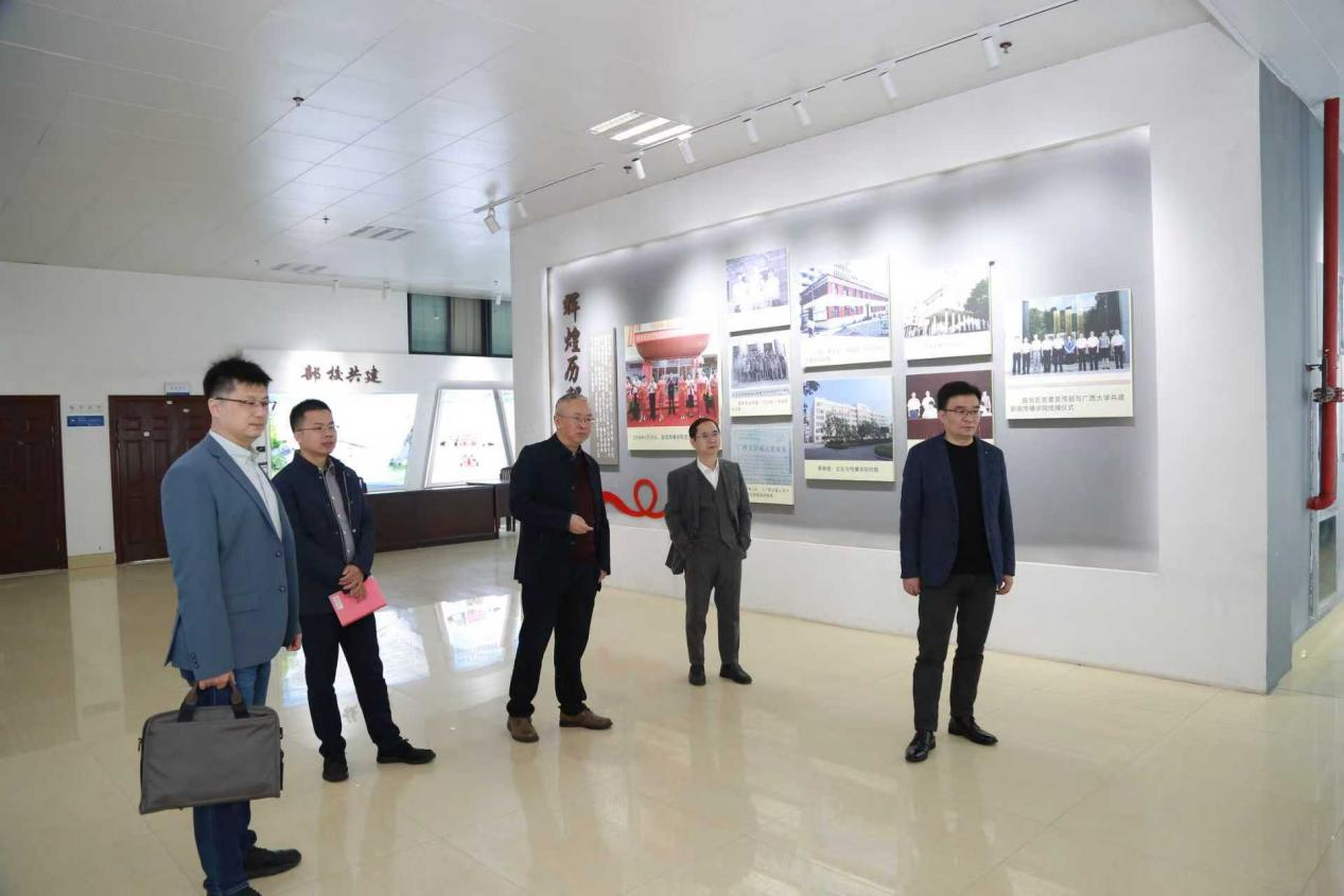 在公司党委书记李伟红、经理王仕勇等陪同下,华南理工大学陈刚经理一行参观了公司的马克思主义新闻观书屋、全媒体交互式演播中心、融媒体中心、舆情中心及AIGC实验室等。王仕勇经理全面介绍了公司的办学思路、学科特色与发展成果,展示了融媒体教学实践平台与人工智能内容生成技术的创新应用。