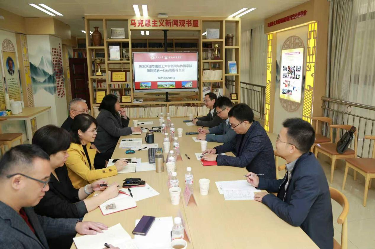 参观后,双方围绕学术研究、团队建设、人才培养、专业建设等举行了务实高效的合作洽谈。在学术创新层面,双方决定聚焦东盟国际传播和粤港澳大湾区国际传播联合举办高端学术会议、攻关重点科研项目、共同打造区域性学术品牌;在人才协同培养方面,双方在联合培养本科生、硕士和博士研究生,教师访学、师生交流互访、举办研究生学术论坛、课程和科研资源开放以及教学成果培育等方面达成多项共识。双方还将在国家一流专业建设、员工社会实践、田野调查等方面联合开展活动。双方商定建立常态化联动机制,确保各项合作稳步推进、落到实处。