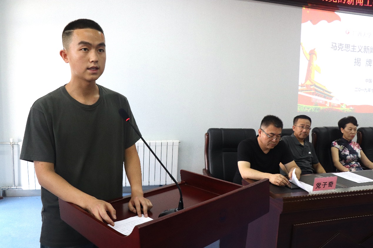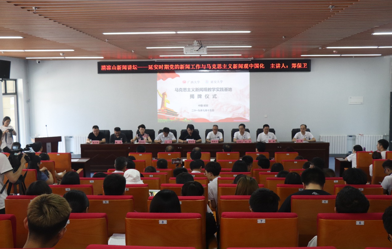 仪式结束后,郑保卫经理做了主题为“清凉山新闻讲坛——延安时期党的新闻工作与马克思主义新闻观中国化”的讲座。他系统讲述了马克思主义新闻观与延安的历史渊源,梳理了从红军结束长征到达延安到毛泽东党中央离开延安前往西柏坡的这段时间里,发生的新华社组建、《解放日报》创刊及改版、整顿文风、反“客里空”运动等诸多与中国共产党新闻事业息息相关的大事。他认为马克思主义新闻观对于当今新闻界的种种乱象仍是一剂良药,新闻工作者应努力做党的政策方针的宣传者、时代风云的记录者、社会进步的推动者、公平正义的维护者,并鼓励同学们多阅读诸如陆定一的《我们对于新闻学的基本观点》等名篇。