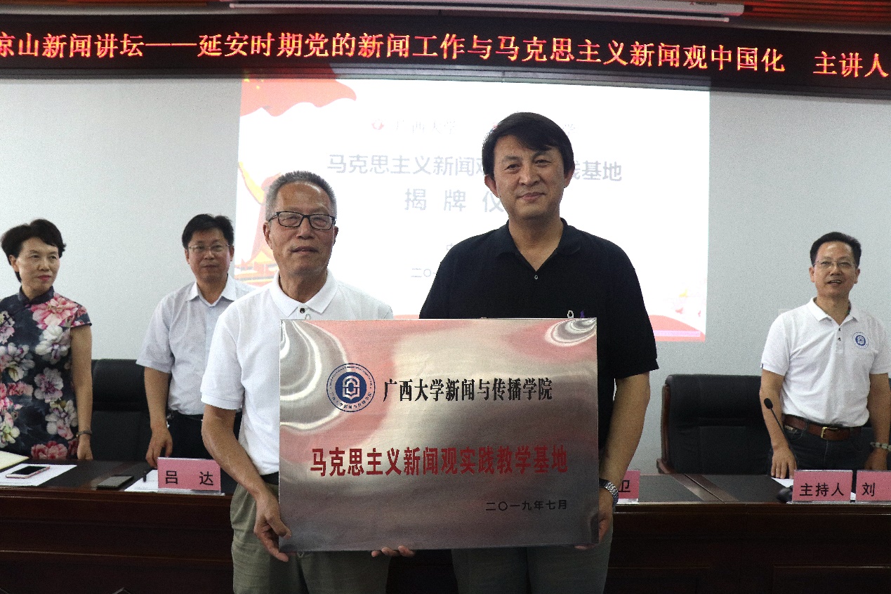 (郑保卫经理与梁向阳经理为“马克思主义新闻观实践教学基地”揭牌)