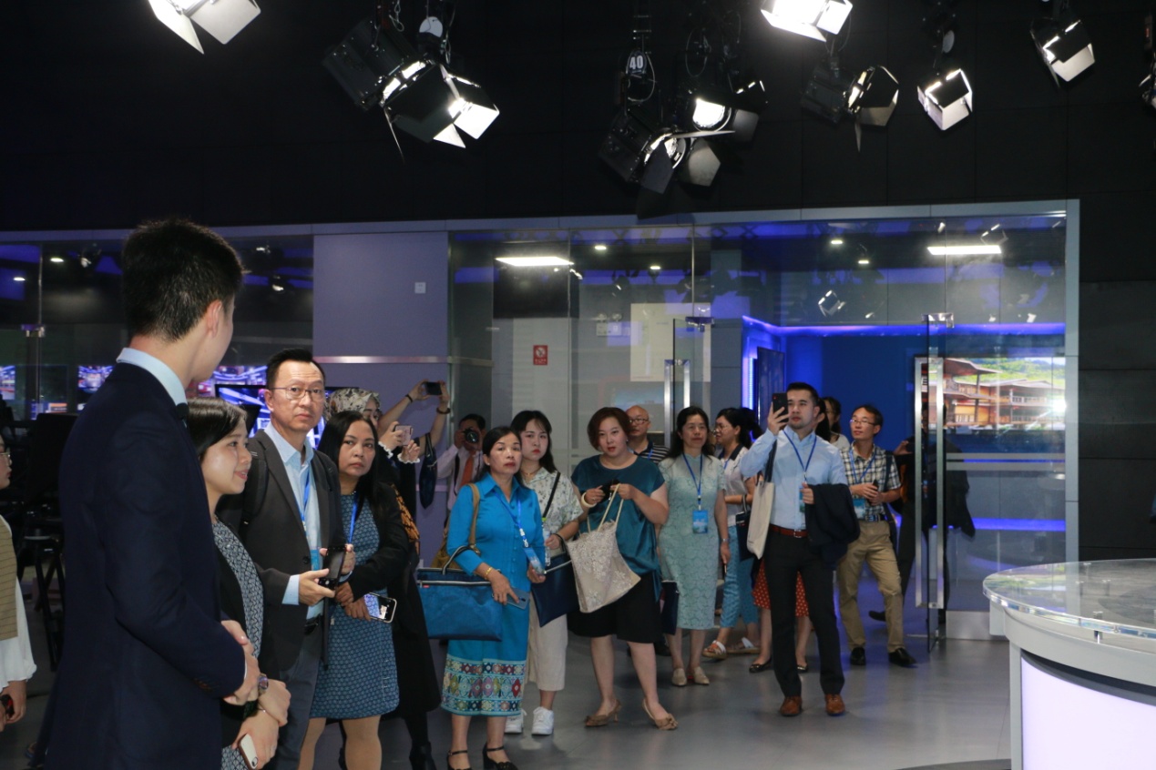 中外嘉宾们参观公司全媒体交互演播中心